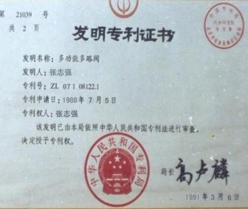 祝賀海龍王公司生產的平面閥獲得國家專利